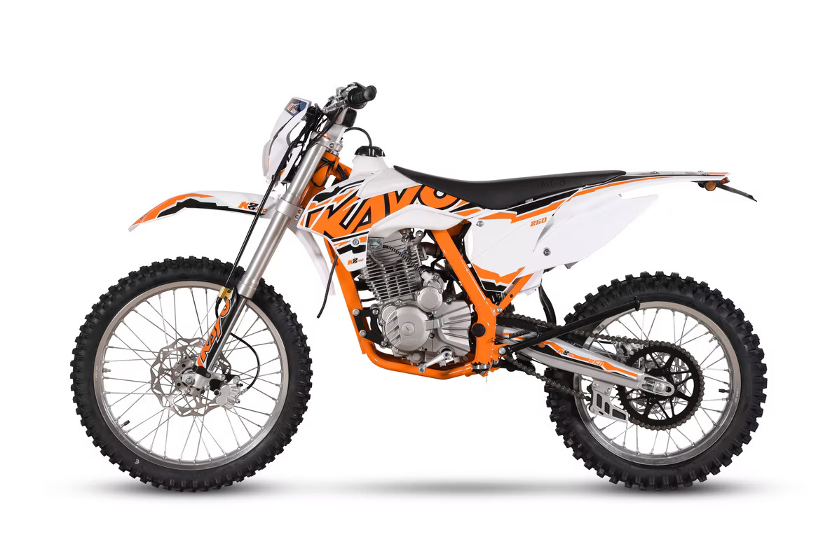 Introducing the K2Pro—the next evolution in entry-level dirt bikes, building on the success of the popular K2 model. With a larger 250cc air-cooled 4-stroke engine, the K2Pro delivers more power and performance while maintaining the smooth, predictable delivery that riders love. The increased suspension travel makes it even more capable on tough trails, absorbing bumps and jumps with ease. Paired with a 5-speed transmission, this bike offers a wide torque range that lets you conquer any terrain. The K2Pro is ready for your next adventure!